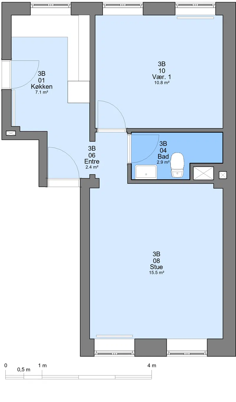 Der er køleskab, komfur og emhætte. Er lejemålet forberedt til opvaskemaskine, vaskemaskine eller tørretumbler kan du ansøge via MinSide om installering.